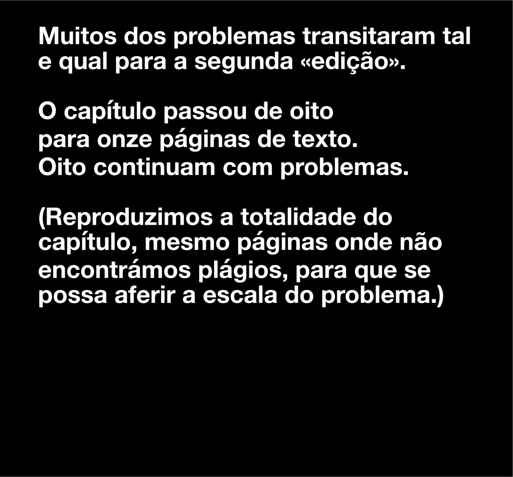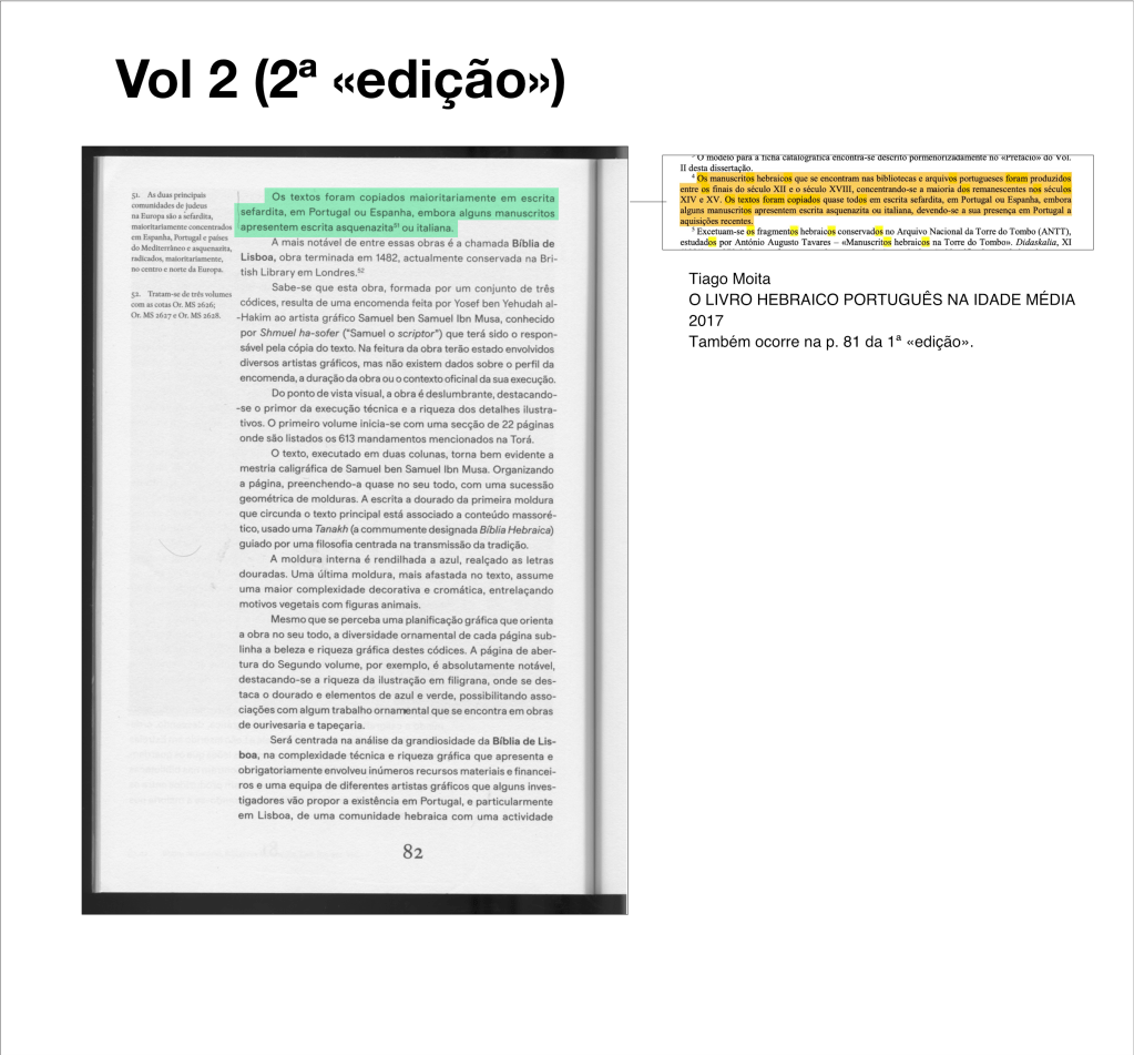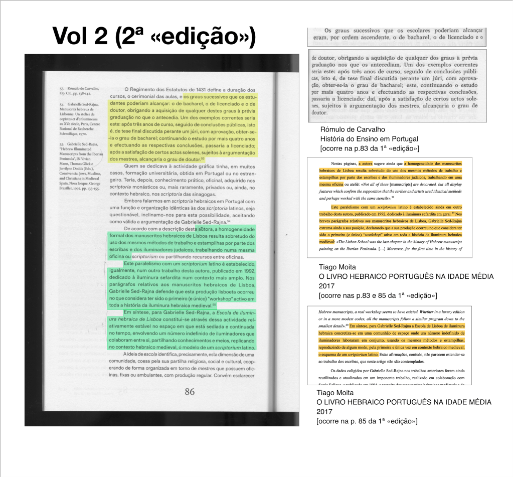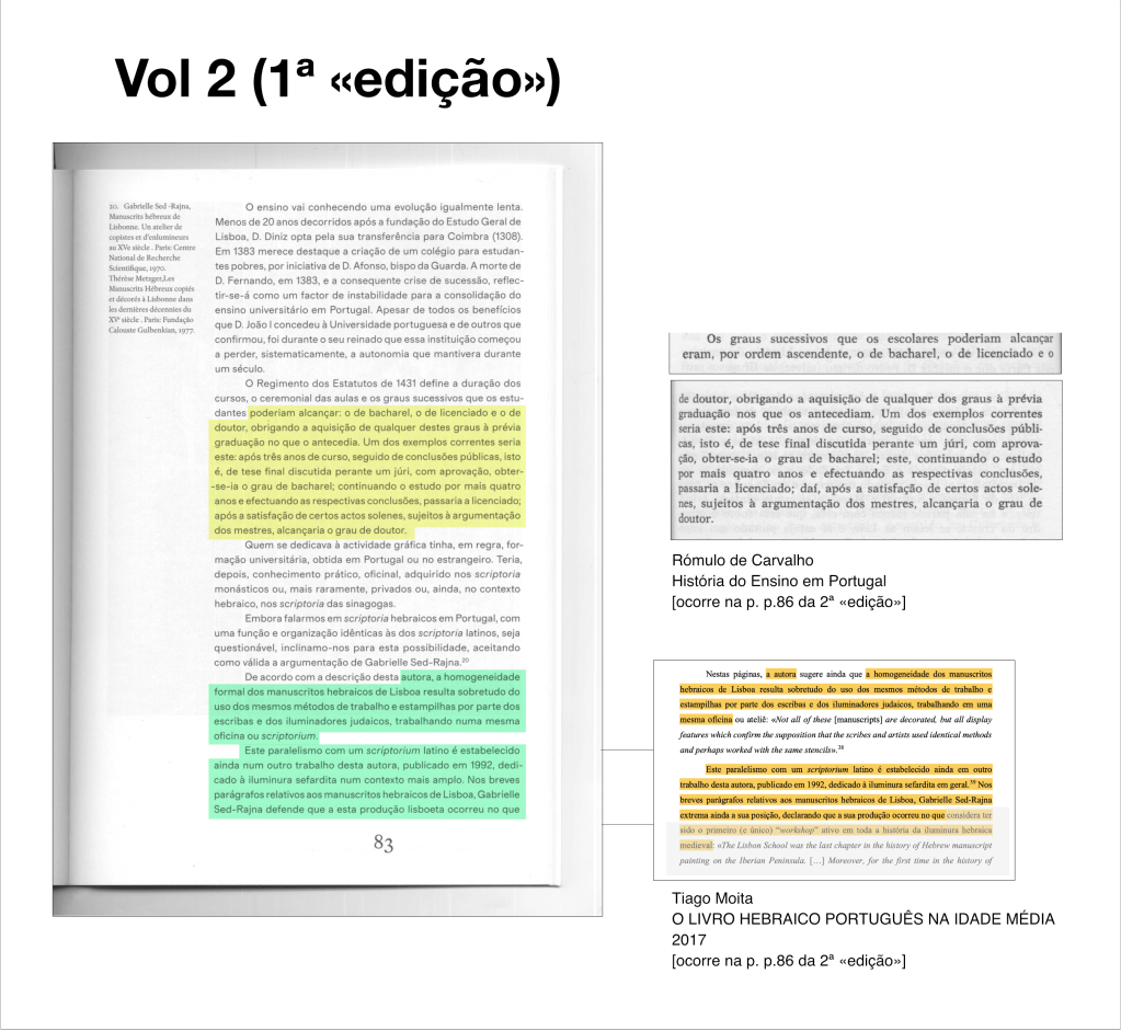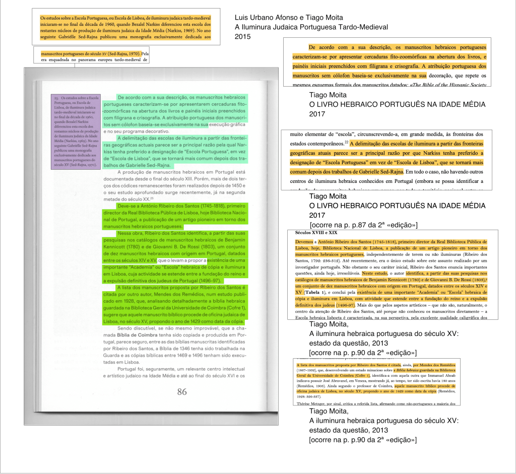 Quase todos os trechos problemáticos foram apropriados de obras de Luís Urbano Afonso, historiador de arte, Professor da Universidade de Lisboa e Tiago Moita, historiador de arte, investigador, teólogo.